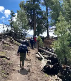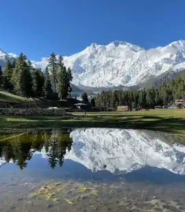 Fairy Meadows is considered the jewel in Pakistan’s crown. The valley is known for its legendary lush green and magical meadows. It can be reached by hiking to Beyal Camp via old birch tree forest and frozen ponds. The valley is overlooked by the spectacular Nanga Parbat (“Naked Face”) mountain, the ninth tallest in the world, standing at 8160 Meters high. The grassland of this area is surrounded by thick Alpine forest. Among mammals, a few brown bears are found in the region, with their numbers declining. Some musk deer, regarded as an endangered species, are also present.